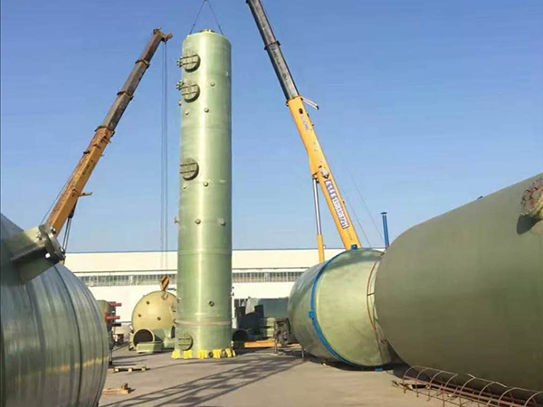 BJS型酸氣凈化塔采用玻璃鋼和聚氯乙烯材料分段制作。塔體 外表面采用耐水、耐老化膠衣樹脂作防老化面層 ,膠衣層厚不小于 0. 5mmo在強(qiáng)度與內(nèi)外表面間采用無一蠟無捻的方格細(xì)布作為耐老 化的渡層其樹脂含量不低于75。4,層數(shù)按大型及技術(shù)標(biāo)準(zhǔn)要求敷設(shè), 樹脂含量達(dá)60-70%,使塔體強(qiáng)度絕對(duì)可靠